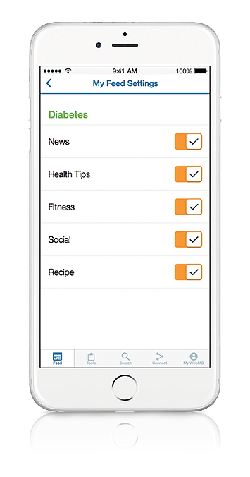All personal account data and settings can be managed and edited on the My WebMD profile page. News feed settings can be accessed from the feed page.